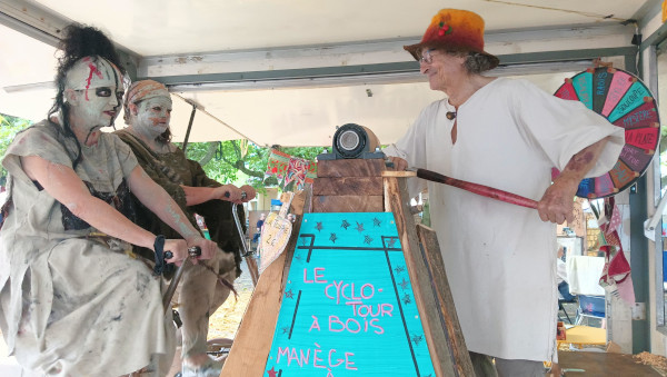 avec en animation le CYCLO-TOUR à BOIS / MANÈGE à TOUPIES ce tour à bois original, écologique, humoristique et interactif, vous pourrez venir y pédaler votre toupie