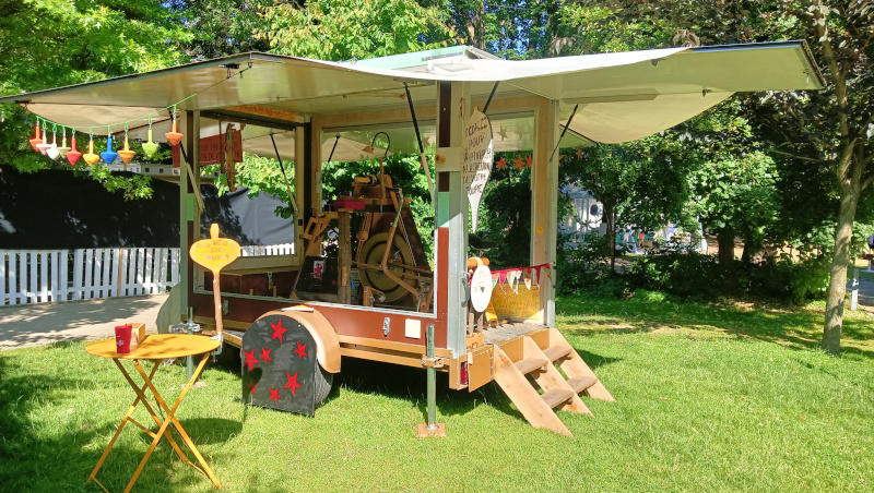 avec en animation le CYCLO-TOUR à BOIS ce tour à bois original, écologique, humoristique et interactif, vous pourrez venir y pédaler votre toupie