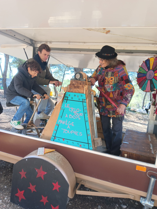 de 15 h à 18h 30 vous pourrez venir pédaler votre toupie sur cette merveilleuse création : le cyclo-tour à bois
